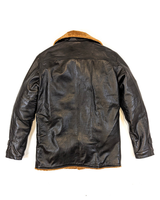 BLACK LAMBSKIN LEATHER JACKET WITH SHEEP FUR LINING